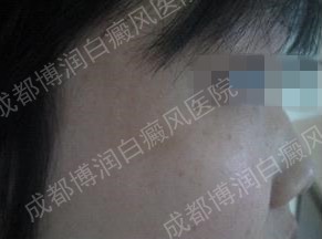 周某某目前任职一家公司的人事主管,平时面试筛选人才都是由她来办理,所以形象方面一直都很注意,一年前,周某某发现眼角处出现一块白色的斑点,因为影响到形象所以她及时到医院检查最后确诊为白癜风。之前在当地皮炎所治疗过,但是效果不明显。于是不敢再怠慢,四处打听经朋友介绍来到成都白癜风医学研究院附属博润医院接受正规治疗。