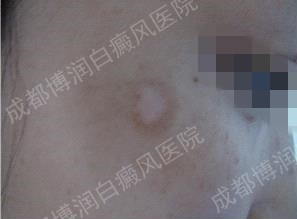 (来院初诊时,白斑处色素并未完全消失,处于发展阶段)