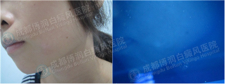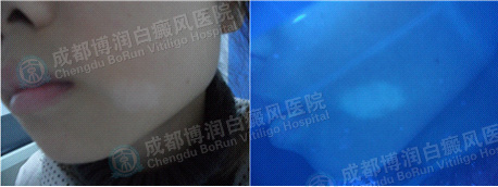 患者孙某某的白癜风发现的早,也及时地采取了治疗,这点是值得提倡的。针对患者的病情,我们为其采用美国第二代308nm准分子激光治疗体系配合体外药离子渗透疗法为其治疗,经过4周(一个疗程)的治疗后,白斑基本消退,疗效显著。我们建议其要做好后期护理工作,注意饮食禁忌,生活作息要规律,工作中要做好脸部保护措施,以确保白癜风的不再复发。