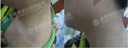 如今,经过两个月的治疗恢复,徐某某的白斑已基本消除,我们建议其要做好后期护理工作,注意饮食禁忌,生活作息要规律,避免阳光暴晒,以确保白癜风的不再复发。