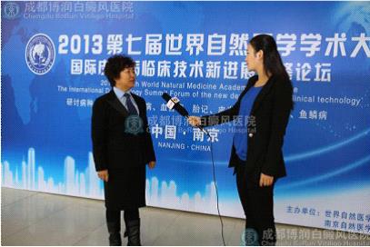 图:第七届世界自然医学学术大会会后,成都白癜风医学研究院附属博润医院吴占琴专家(左)接受媒体采访
