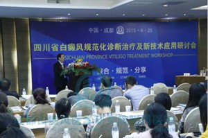 由四川省皮肤病性病质量控制中心主办的2015四川省白癜风规范化诊断治疗及新技术应用研讨会。此次研讨会汇聚了国内皮肤病领域100多名教授、学者,是西南地区目前最高规格的白癜风研讨会。第四军医大学西京医院皮肤科的主任高天文教授介绍,此次研讨会秉持“整合·规范·分享”的会议精神,整合白癜风领域最新资源,旨在加强中国白癜风临床病理研究成果的交流、提升白癜风临床技术水平、积极推广自然疗法临床应用、造福白癜风患者。