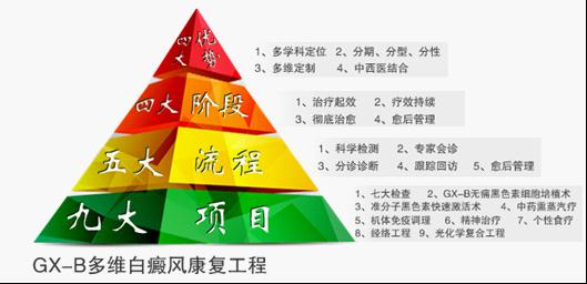 白癜风专家表示,只有坚持白癜风的系统标准检测、评价、白癜风的三级诊断(分诊、分期、分型、分性、分类)、白癜风的四维分诊防治,才算是真正治疗白癜风,才能避免误区,坚持规范、合理的标准化治疗,九成以上的白癜风患者都是可以临床治愈的。GX-B多维白癜风康复工程国内首创四维分诊防治模式,精准要求医生进行标准化规范诊疗,患者可以不看冤枉病、不走冤枉路、不吃冤枉药、不受冤枉苦。